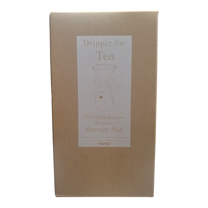 Zestaw Hario składający się z zaparzacza do herbaty Cha Cha Bouquet, serwera oraz papierowych filtrów. Prosty i efektowny sposób na przygotowanie doskonałej herbaty.