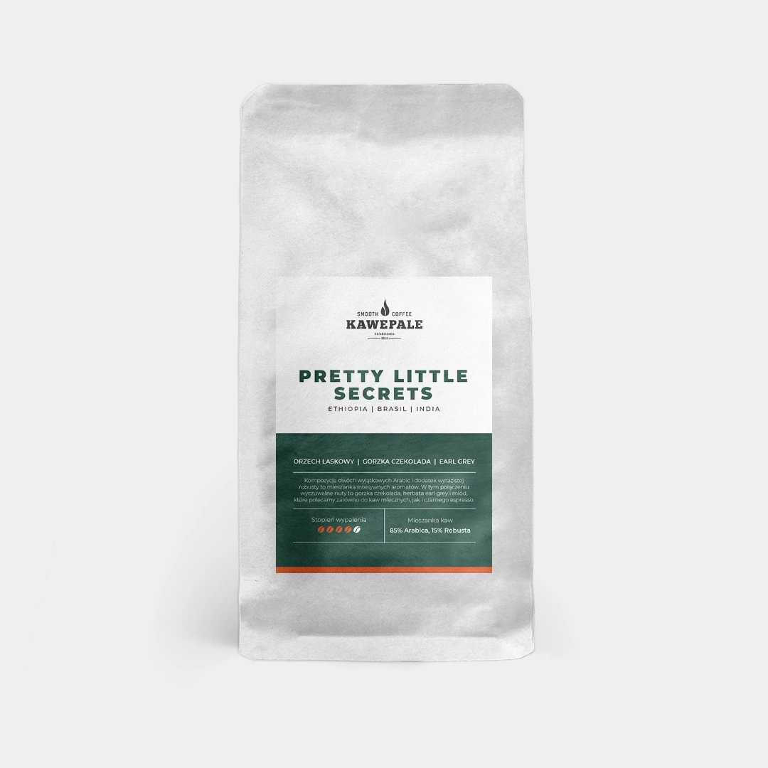 Mieszanka kaw: 85% arabiki, 15% robusty, wypalona w palarni KawePale. Palona w średnim stopniu, idealna do ekspresu ciśnieniowego i kawiarki. W jej smaku pojawiają się nuty zbliżone do orzech laskowy, gorzka czekolada, earl grey.