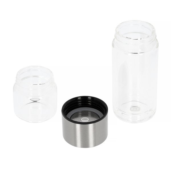 Butelka składa się z trzech części: małego szklanego zbiornika, dużego szklanego zbiornika oraz z łączącego je elementu z filtrem. Duży zbiornik ma podwójne ścianki, co chroni dłonie. Otwory sitka są drobne, w rezultacie czego napar jest klarowny.
