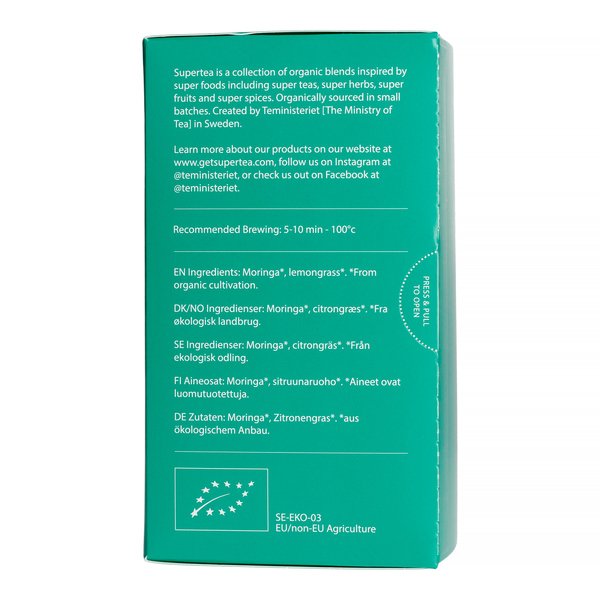 Supertea to seria organicznych herbat i ziół, stworzona przez szwedzką markę Teministeriet. Każde opakowanie zawiera 20 oddzielnych saszetek, w których kryją się torebki z herbatą – biodegradowalne, wykonane z dbałością o środowisko. Mnóstwo naturalnych składników, ogrom smaku i moc aromatu!