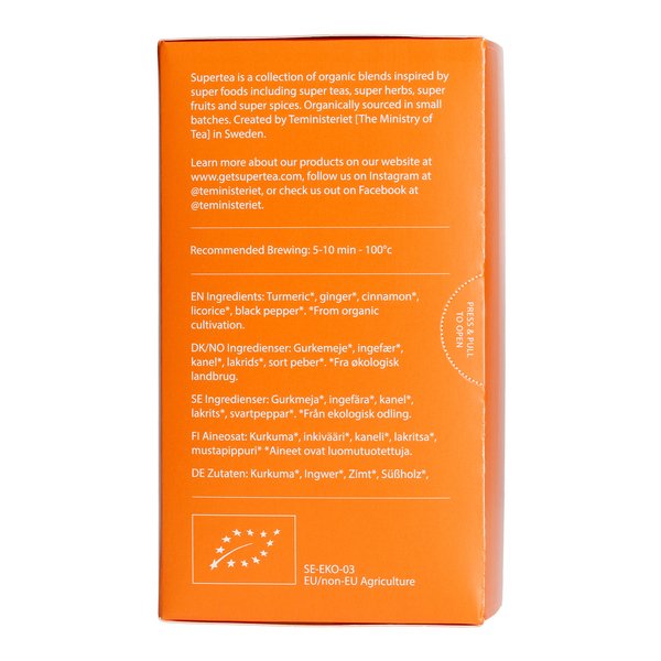 Supertea to seria organicznych herbat i ziół, stworzona przez szwedzką markę Teministeriet. Każde opakowanie zawiera 20 oddzielnych saszetek, w których kryją się torebki z herbatą – biodegradowalne, wykonane z dbałością o środowisko. Mnóstwo naturalnych składników, ogrom smaku i moc aromatu!